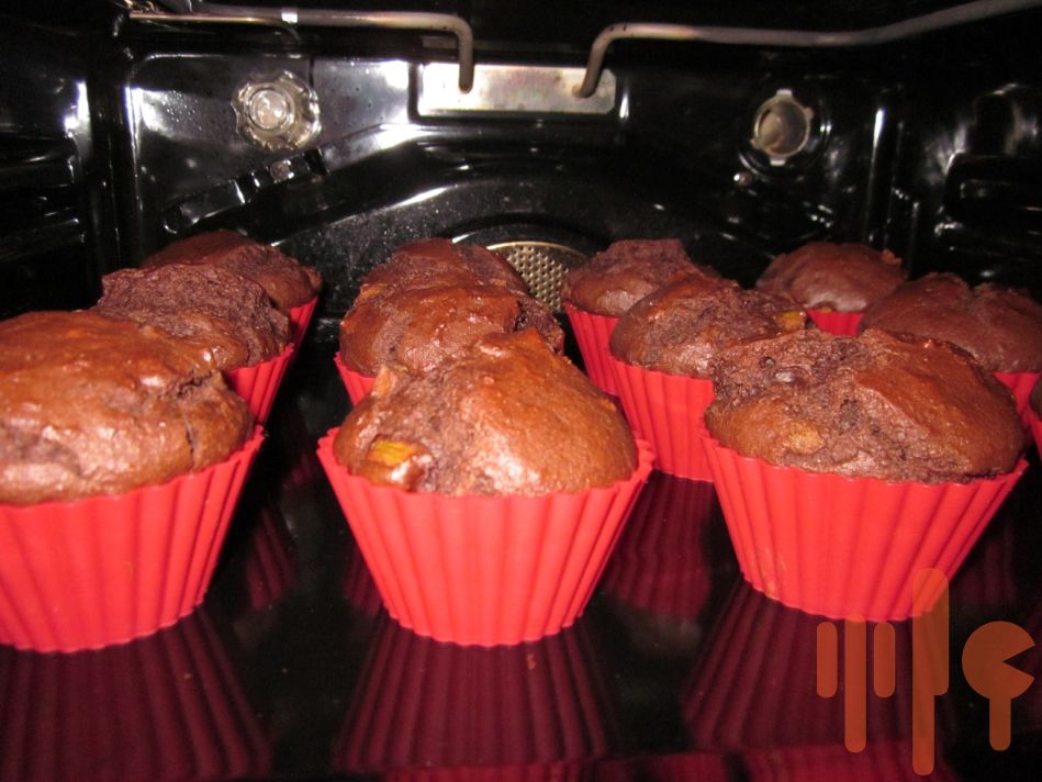 Postupne naplňte jednotlivé formy muffinu zmesou. (toto je recept na 12 muffinov veľkých) ak by ste mali menšiu formu, treba to patrične upraviť, alebo ak máte väčšiu, budú maffiny menšie.
