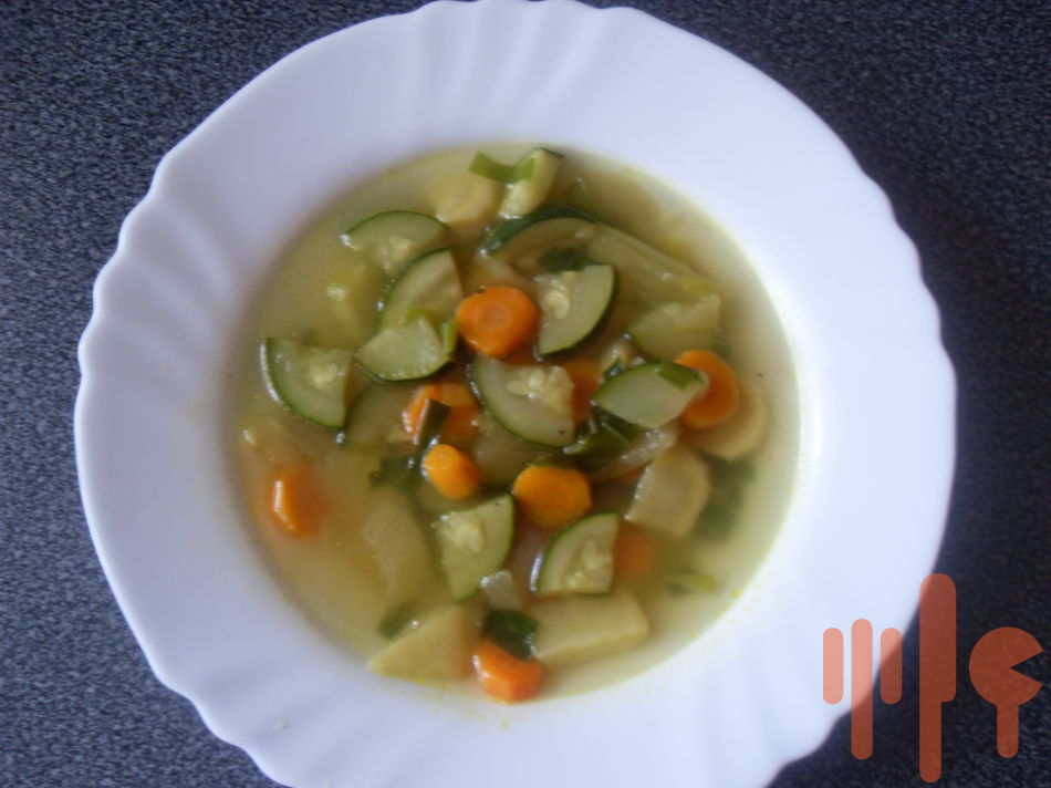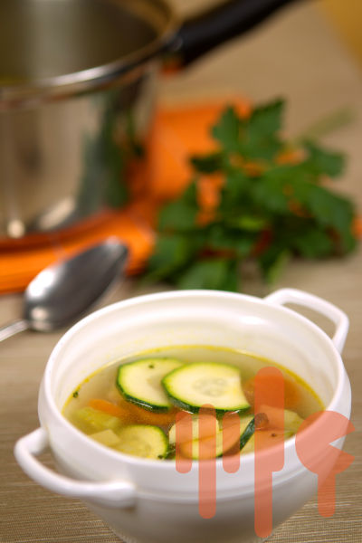 Zeleninu- mrkvu, paštrnák, cibuľu, cesnak a zeler.. nakrájame na kúsky / cibuľu môžeme nechať aj v celku a nakoniec ju vybrať/ vložíme do vody a varíme asi 5 minút, potom pridáme nakrájanú cuketu a pór. Varím ďalším 5 minút....do polomäkka. Ochutíme bylinkovou soľou, korením....a na koniec pridáme olivový olej. Pri podávaní doplníme petržlenovú vňať.