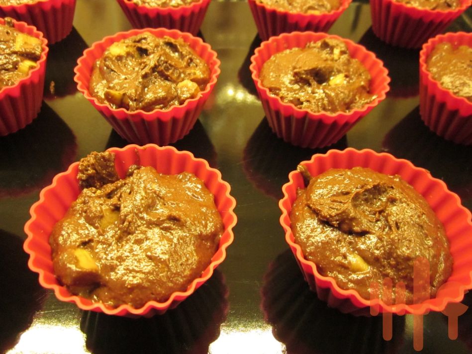 Postupne naplňte jednotlivé formy muffinu zmesou. (toto je recept na 12 muffinov veľkých) ak by ste mali menšiu formu, treba to patrične upraviť, alebo ak máte väčšiu, budú maffiny menšie.