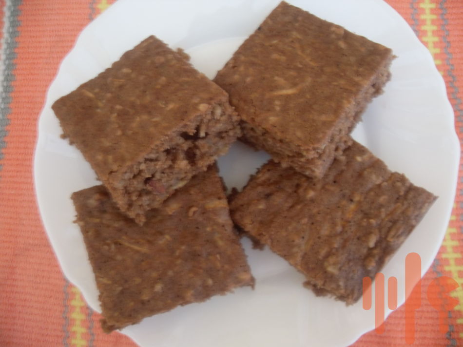 Jabĺčka ošúpeme a postrúhame na hrubo. Vajcia vyšľaháme s cukrom do peny. Múku zmiešame s práškom do pečiva /1ks/, kakaom, štipkou soli a škoricou. Túto zmes zamiešame do vyšľahaných vajec s cukrom. Dobre premiešame. Nakoniec vmiešame strúhané jablká. Podľa chuti možno pridať oriešky, mandle, alebo hrozienka. Dopočítať do kalorickej hodnoty koláčika. Chutí aj bez pridania kakaa.