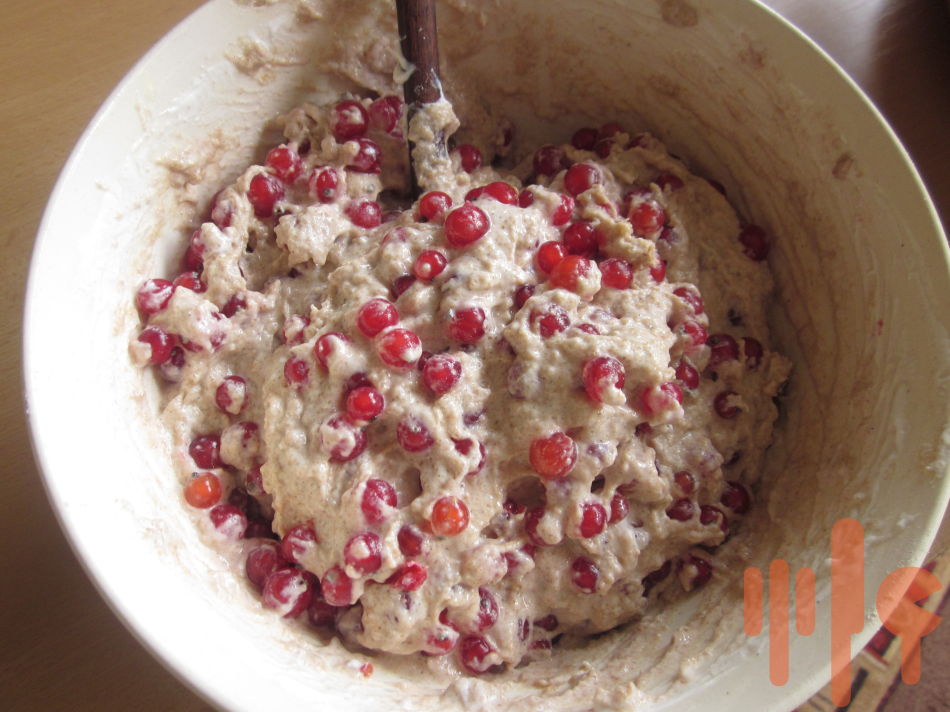 Do tejto zmesi vmiešajte suchú zmes, dobre premiešajte a opatrne vmiešajte umyté odkvapkané ovocie. Naplňte mufinové formičky a pečte pri teplote 180C cca 30 minút.