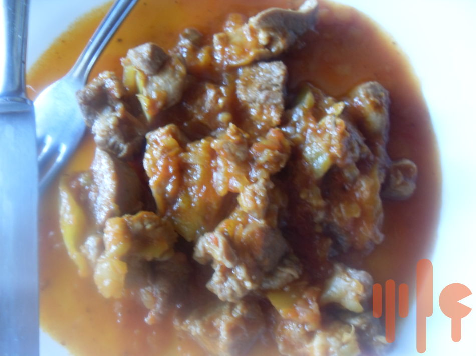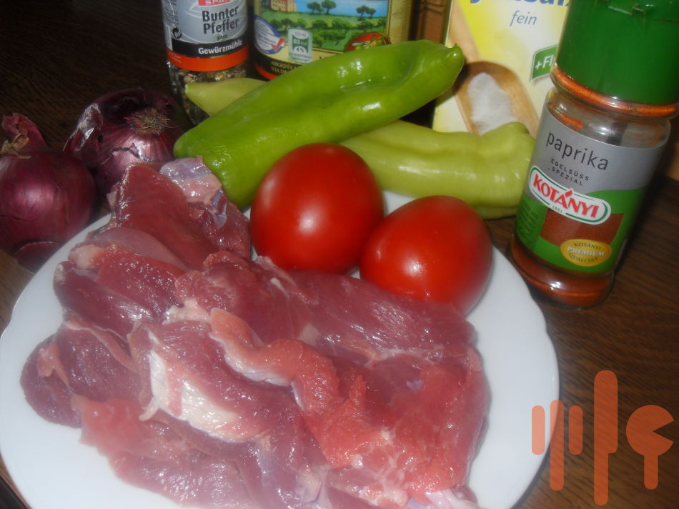 Do hrnca dáme lej, orestujeme cibuľu, pridáme nakrájané mäso a prudko opečieme. Zníime teplotu, pridáme mletú červenú papriku, premiešame a podlejeme vodou. Pridáme zeleninu, osolíme a dusíme do mäkka. Na záver ochutíme podľa zvyklostí...majorán, čierne korenie...prípadne feferónka.