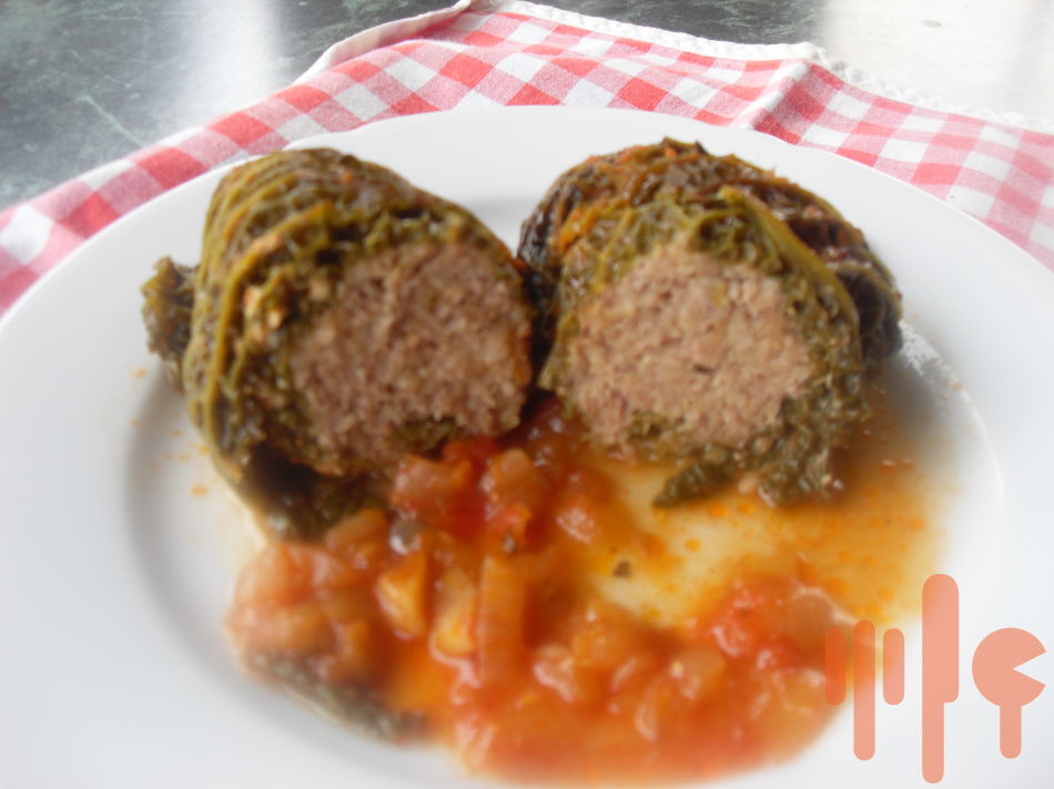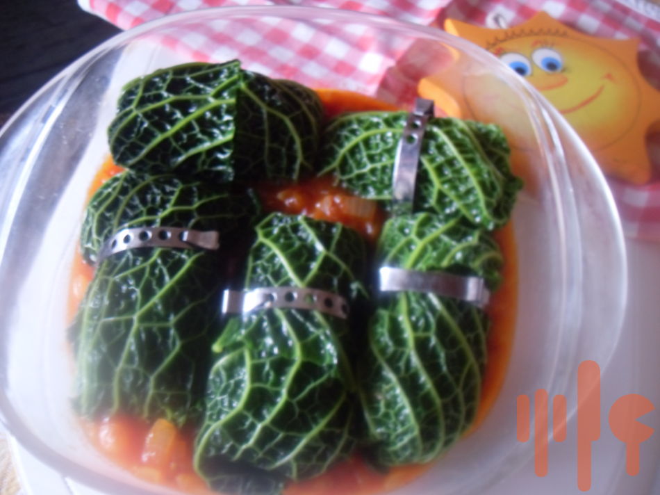 Kel rozoberiem na listy, tak aby sme mali na 4 porcie a dáme ich do vriacej osolenej vody na cca 10 minút povariť, pritom si môžete spariť aj paradajky a ošúpať ich. Záleží od hrúbky listov, nemali by veľmi zmäknúť, lebo sa rozpadnú. Ovsené vločky zaparte horúcou vodou. Medzitým si pripravíme plnku z mletého mäsa, do ktorého sme zamiešali namočené ovsené vločky, vajce, soľ, korenie a trochu oregana. Kelové listy vyberte z vody, vyrežte opatrne hlúbiky a rozprestrite na dosku. Na každý list položte do stredu mäsovú plnku a zaviňte, ak je treba pomôžte si obrúčkami na závitky,alebo niťou.