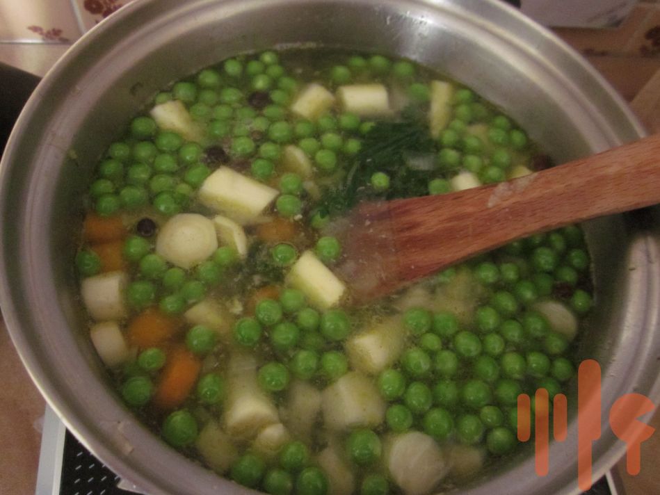 Očistenú a nakrájanú zeleninu pridajte k morčaciemu vývaru a povarte ďalších 15-20 minút.