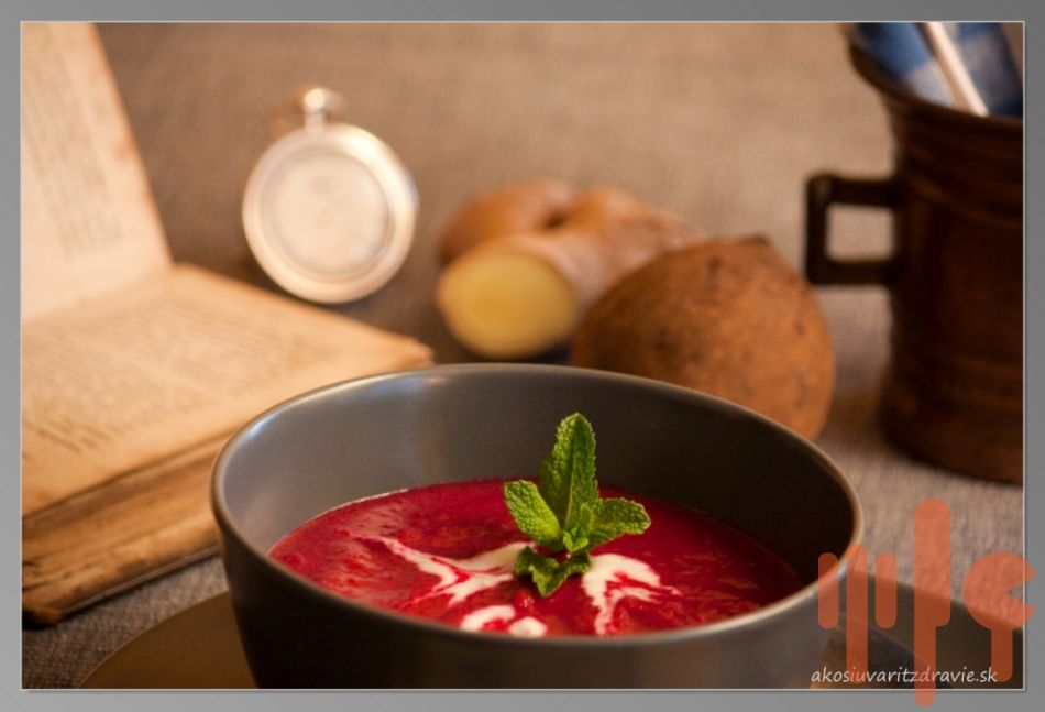 Mäkkú cviklu rozmixujte ponorným mixérom ho hladka. Prilejte kokosový krém a podľa chuti citrónovú šťavu.