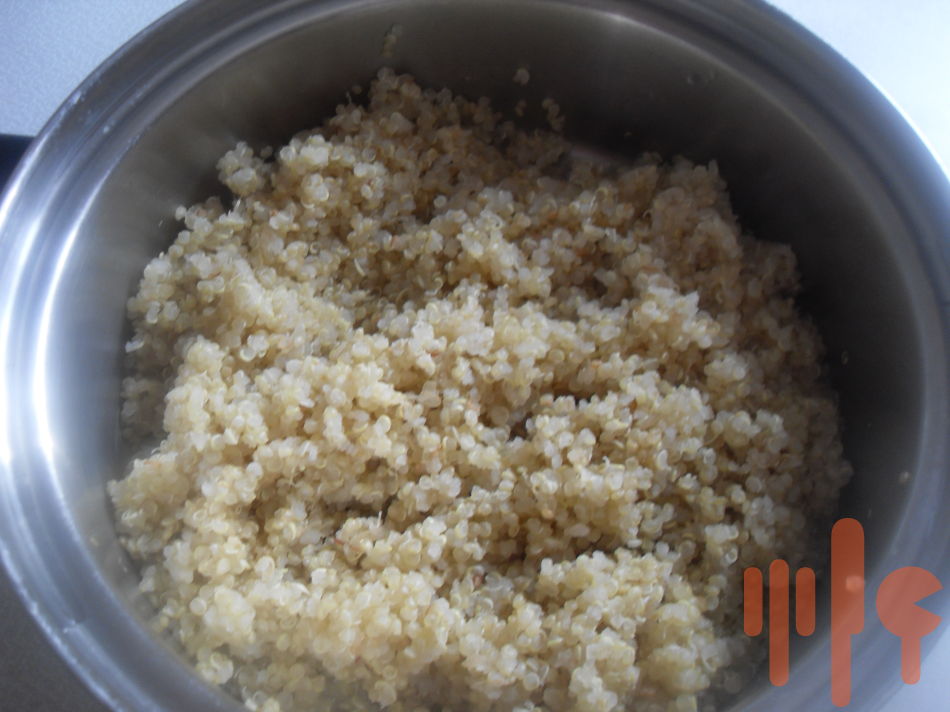 Quinou prepláchnite vriacou vodou...odstráni sa jej jemne nahorklá chuť....varte vo vode v pomere 1:2,