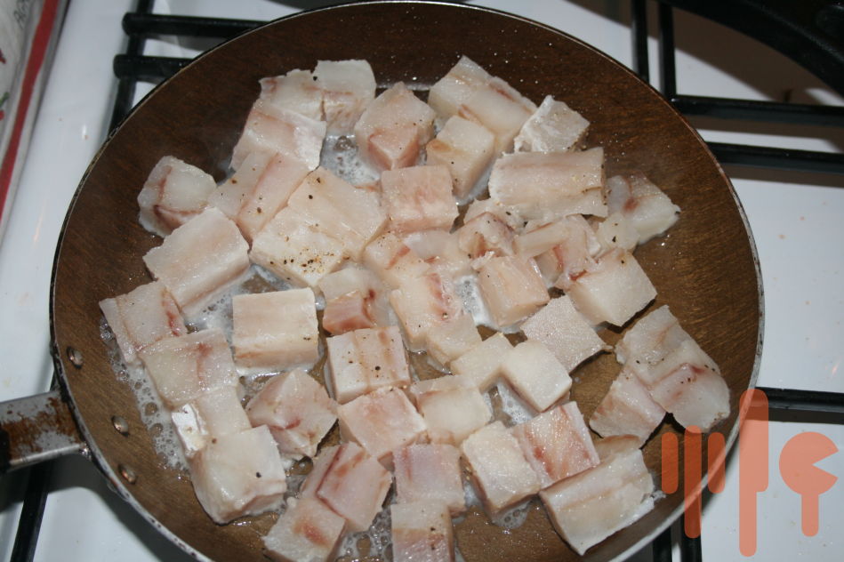 Mrazené rybie filé pokvapkáme citrónom, osolíme, okoreníme, pokrájame na väčšie kocky