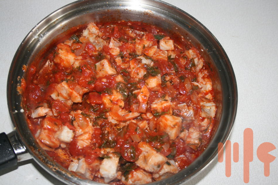 Takto pripravené rybiy filé pridáme do paradajkovej zmesi.